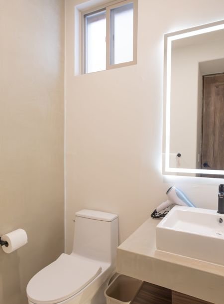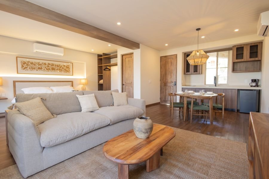 El espacio integra una agradable sala de estar, comedor, cocina totalmente equipada, aire acondicionado y un baño completo. Sus interiores, cuidadosamente diseñados y llenos de detalles contemporáneos, crean un ambiente cálido y sofisticado que invita a relajarse y disfrutar de una estancia tranquila y placentera.